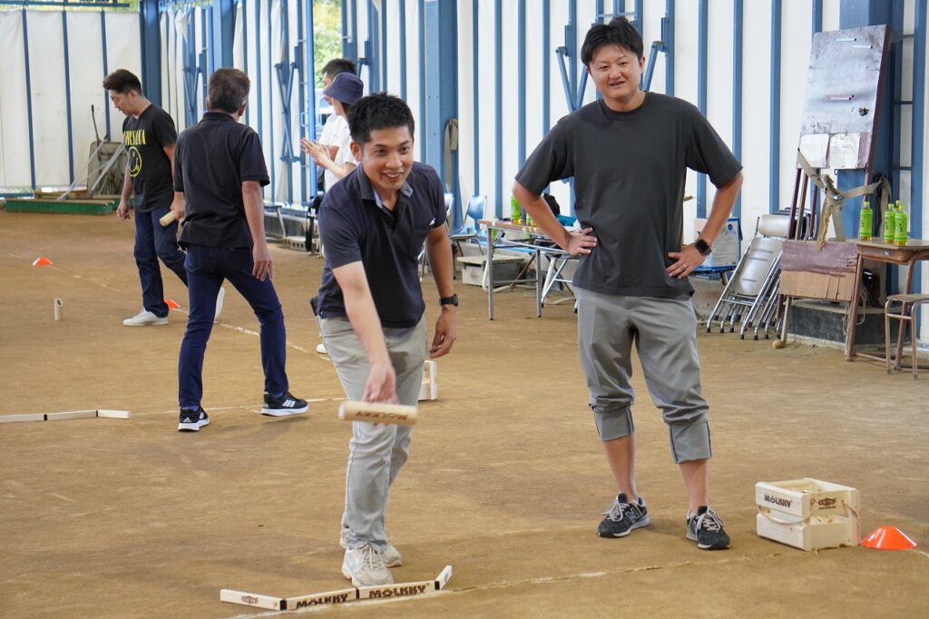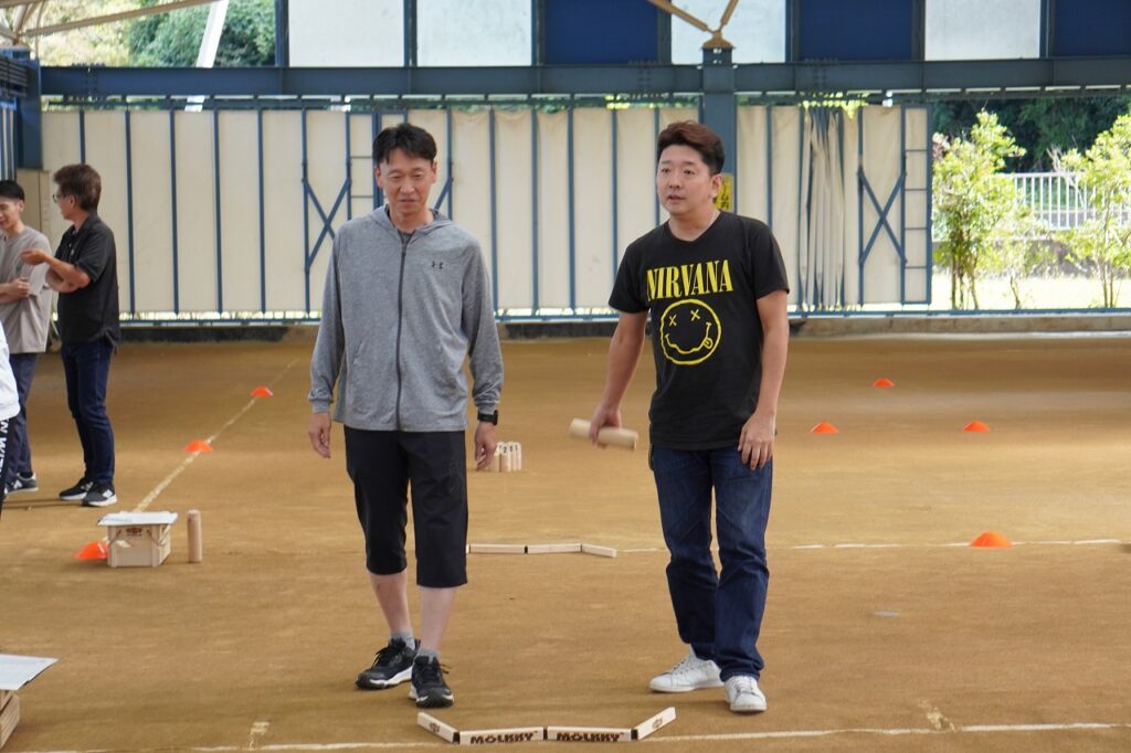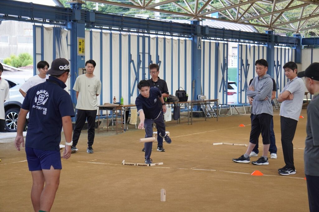 まだまだ残暑の続く9/27(土)に特別事業ほくと舞鵬会との交流事業としてモルック大会を行いました。モルックがニュースポーツということもあり、本事業にはモルック舞鶴という団体で京都北都信用金庫の職員でもあられる村上様、千坂様に大会運営のお手伝いをしていただきました。