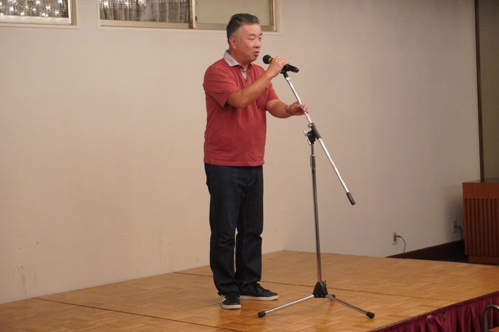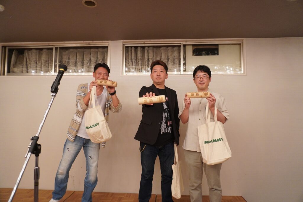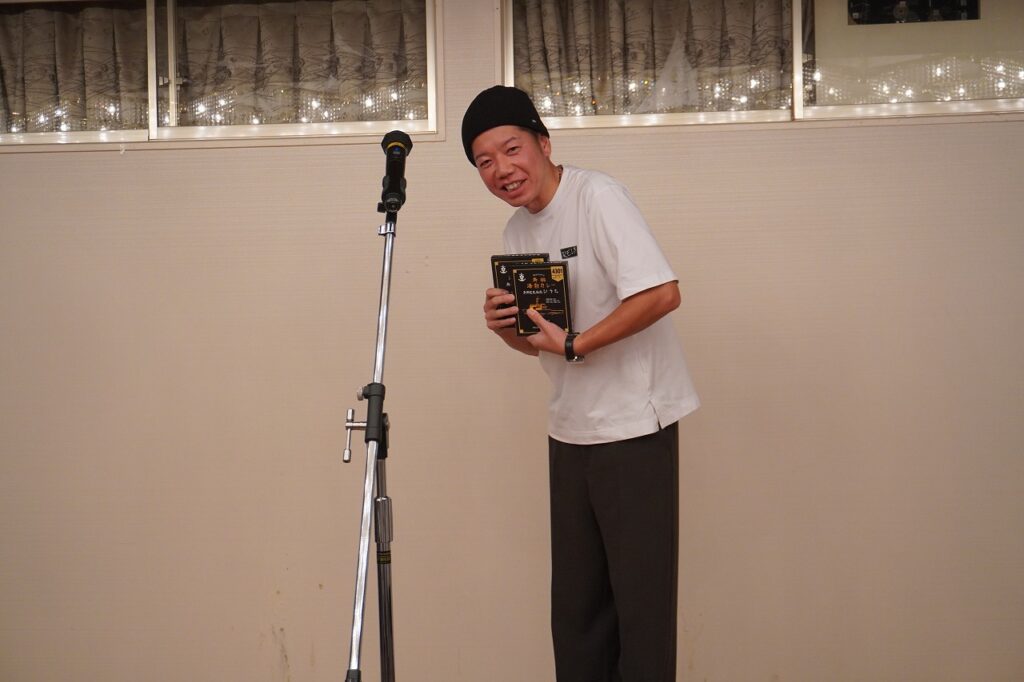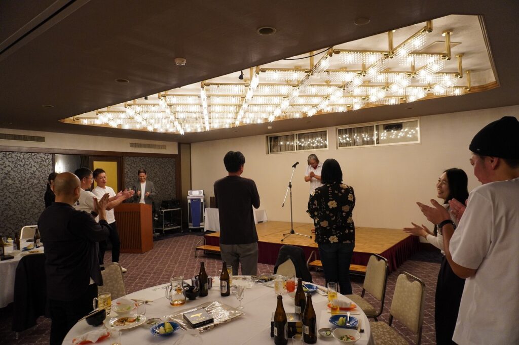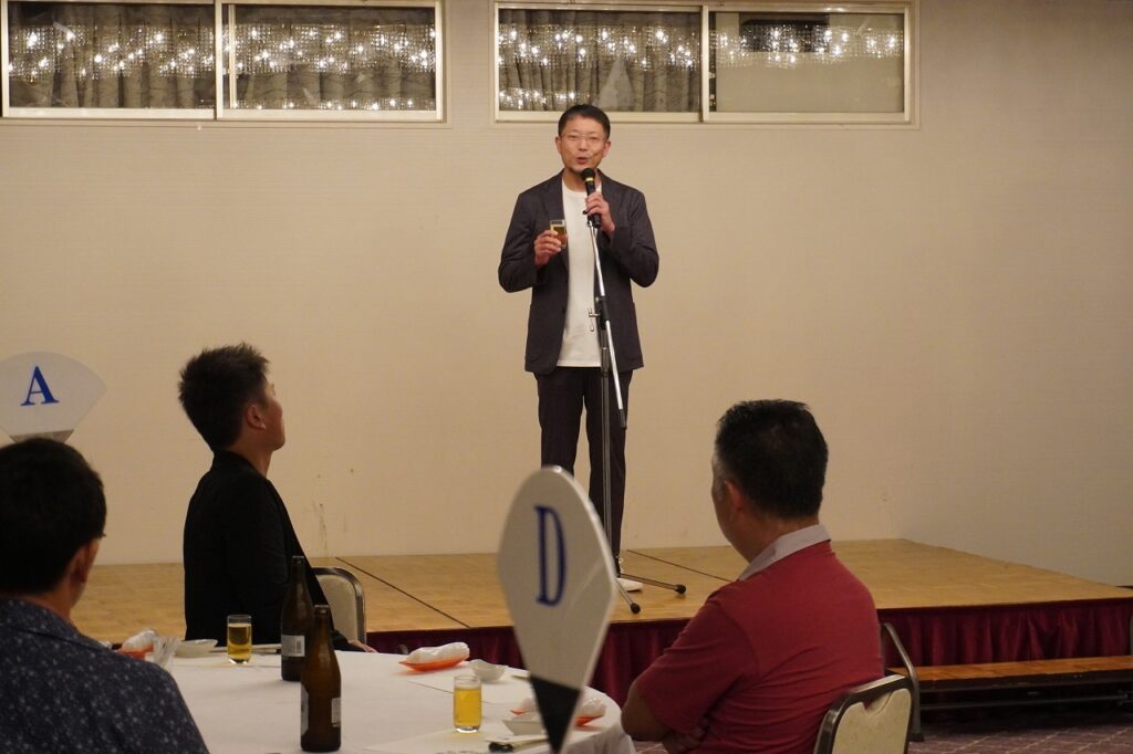 夜はグランドホテル様にて懇親会を行いました。懇親会からご出席して頂いた方もおられましたが、和気あいあいと歓談していただけました。また、モルック大会の景品贈呈も懇親会で行い、豪華景品の贈呈や皆様の一言感想でとても盛り上がりました。