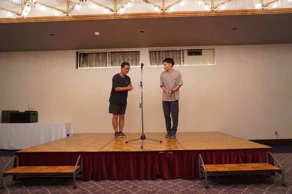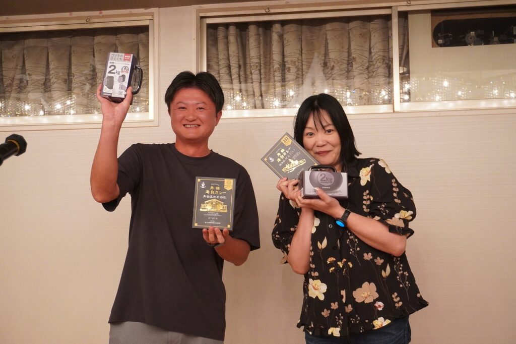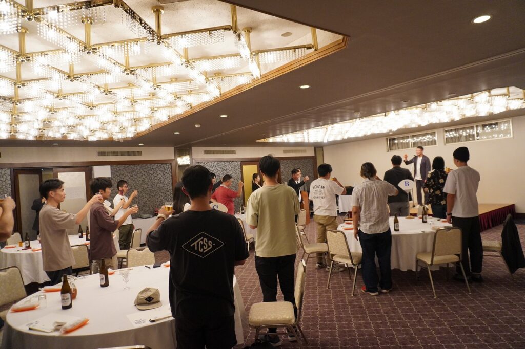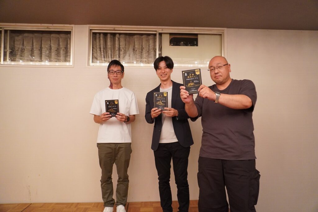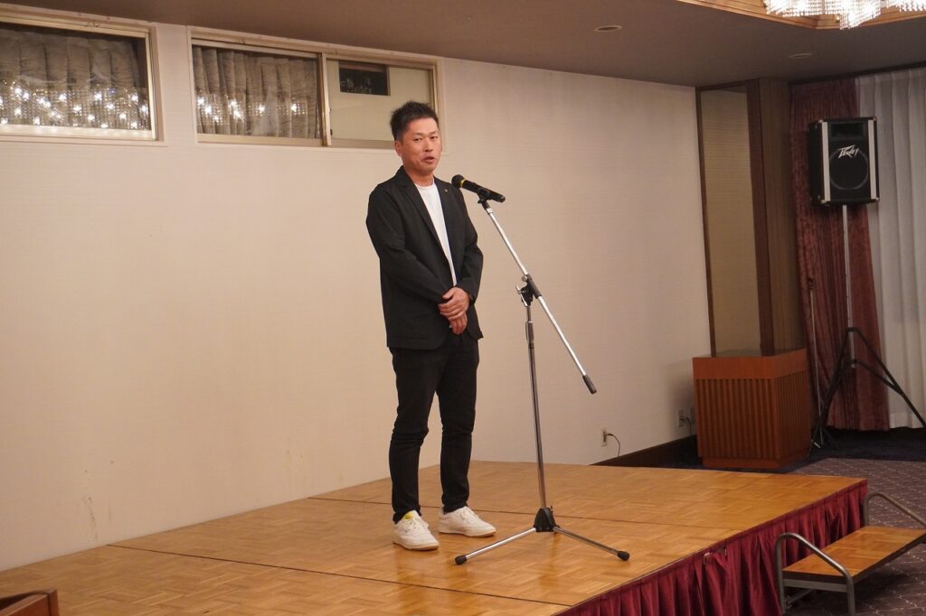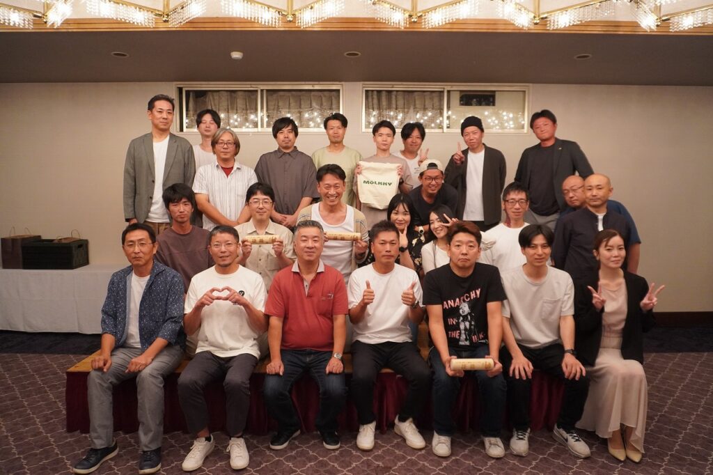 夜はグランドホテル様にて懇親会を行いました。懇親会からご出席して頂いた方もおられましたが、和気あいあいと歓談していただけました。また、モルック大会の景品贈呈も懇親会で行い、豪華景品の贈呈や皆様の一言感想でとても盛り上がりました。