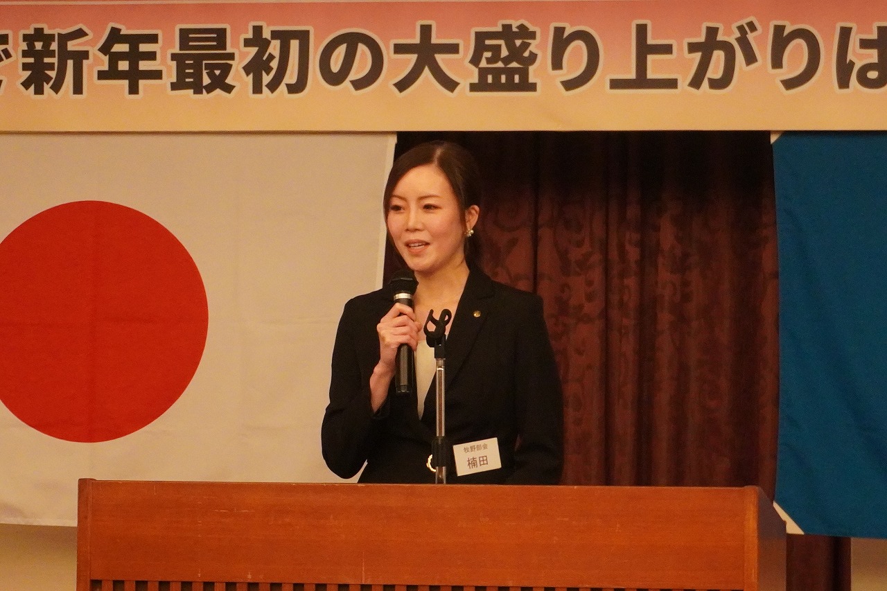 本年度は楠田会長のスローガン「新風、希望をのせて」~今こそ変わるとき、絆を力に~のもと