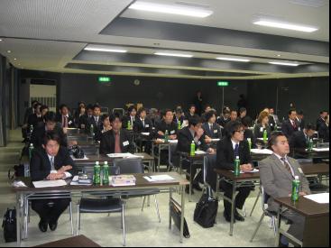 やや緊張気味の表情酒井部会長の挨拶。 |